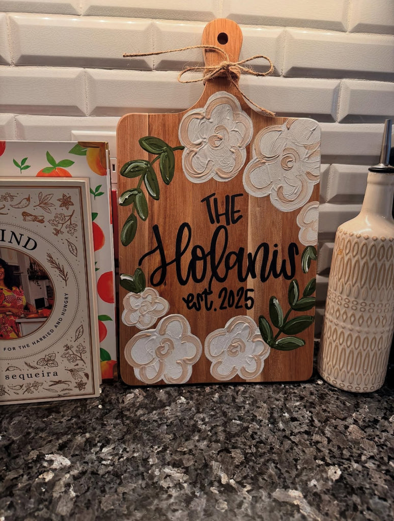 Custom Last Name Charcuterie Board: Hand-Painted Acacia Wood