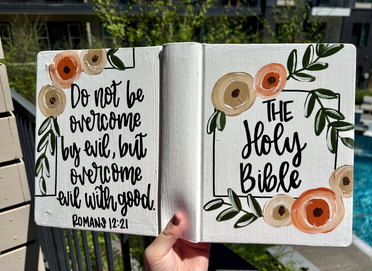These are great wedding gifts, Christmas gifts, birthday gifts, etc. A Bible is a gift that will last a lifetime. Even better, a hand-painted Bible puts a personal touch on such a heartfelt gift. Each Bible is painted by me, and made to order. They are also sealed to prevent scratches. They are all prayed over, and carefully painted with you in mind.