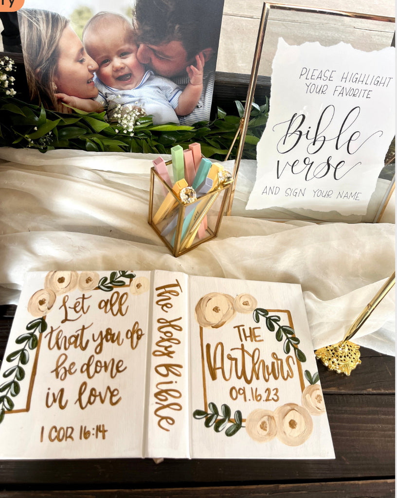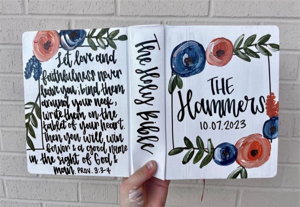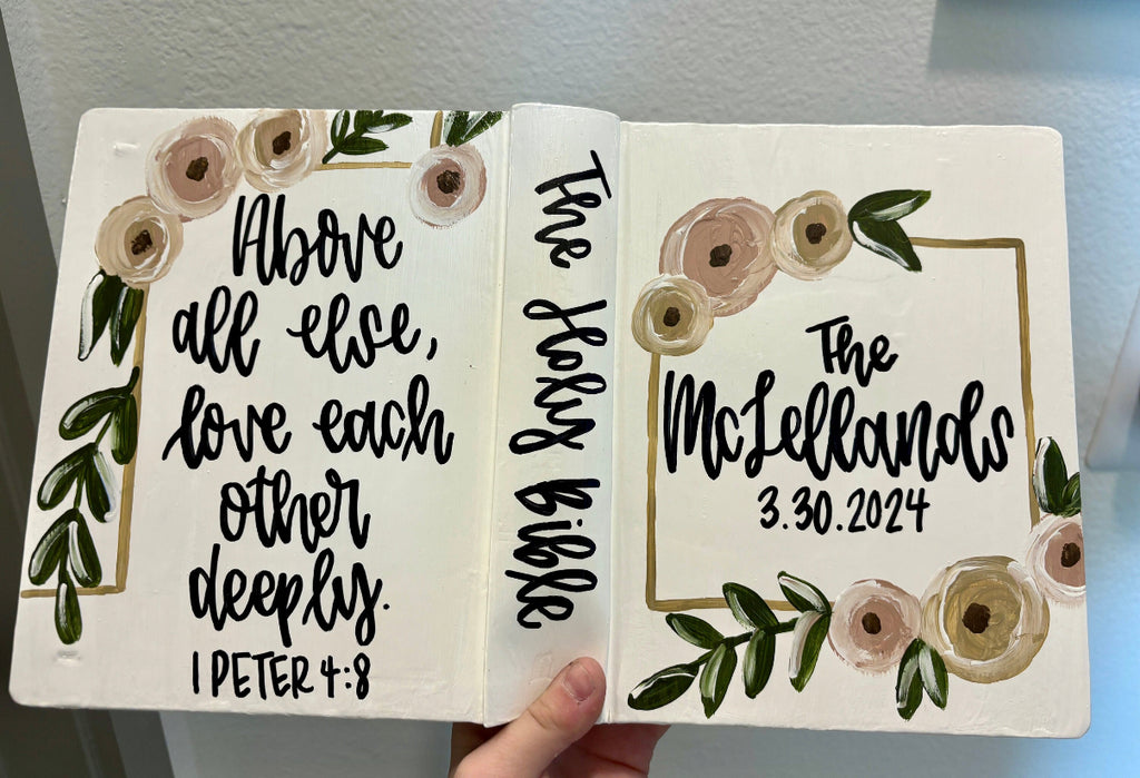 Navy & Terracotta Florals Wedding Bible Guestbook