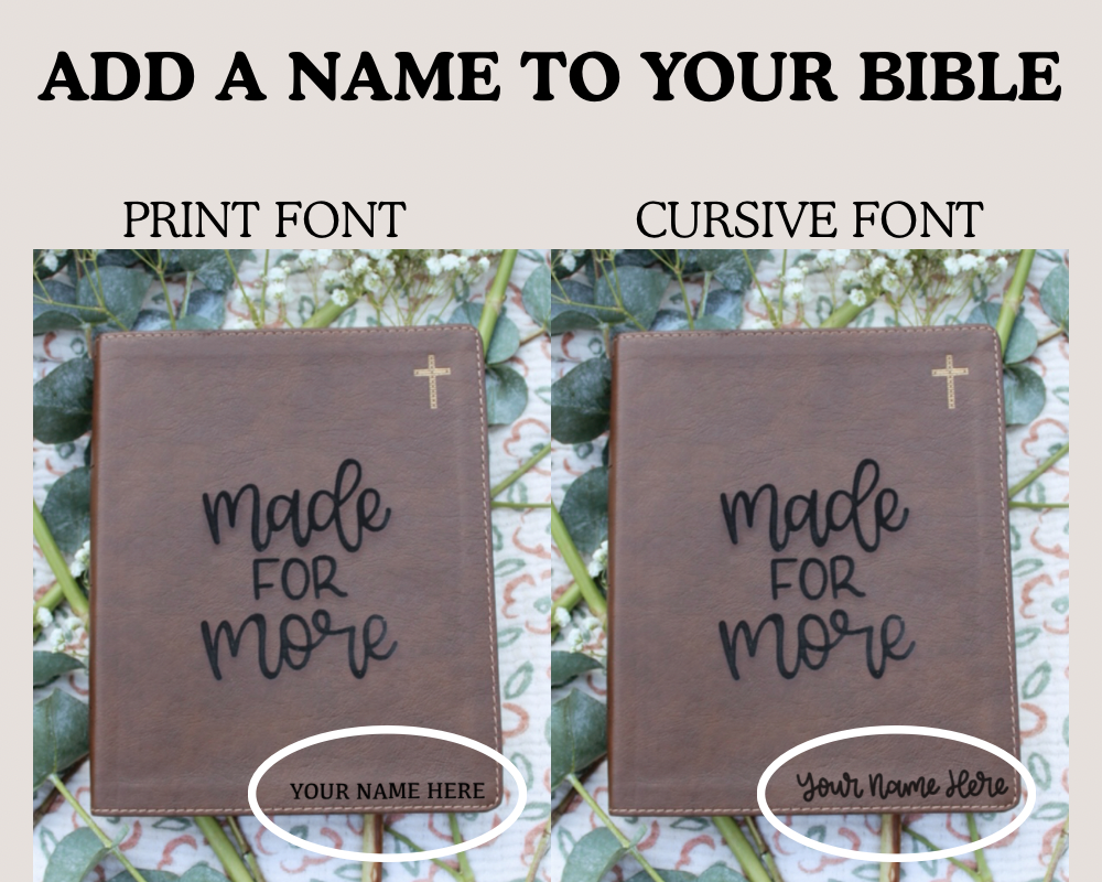 These are great wedding gifts, Christmas gifts, birthday gifts, etc. A Bible is a gift that will last a lifetime. Each Bible is prayed over, and carefully created with you in mind.