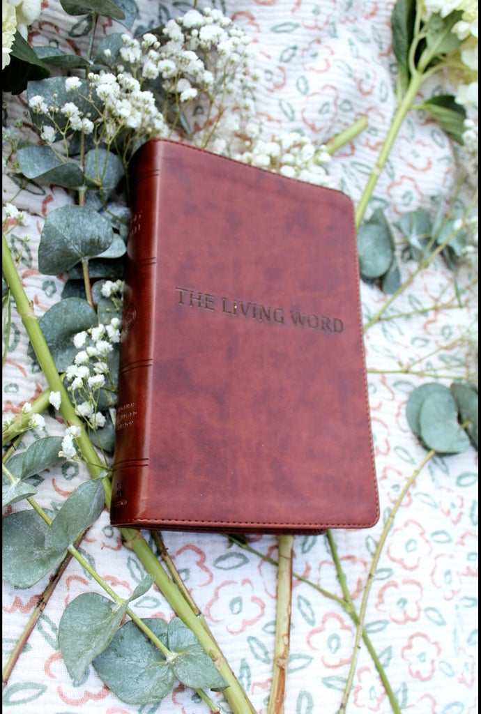 The Living Word Bible II | Personalized Leather Bible with Laser Engraving | Keepsake Gift | Christian Wedding, Baptism