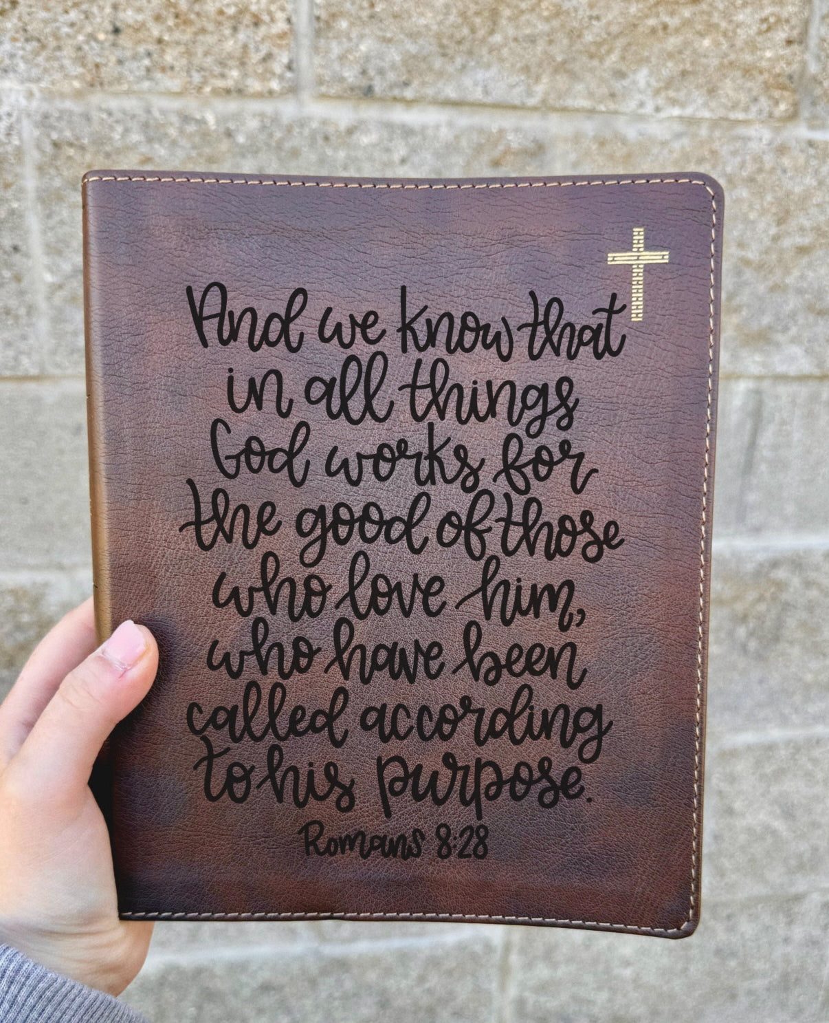 The Romans 8:28 Bible | Personalized Leather Bible with Laser Engraving | Keepsake Gift | Christian Wedding, Baptis