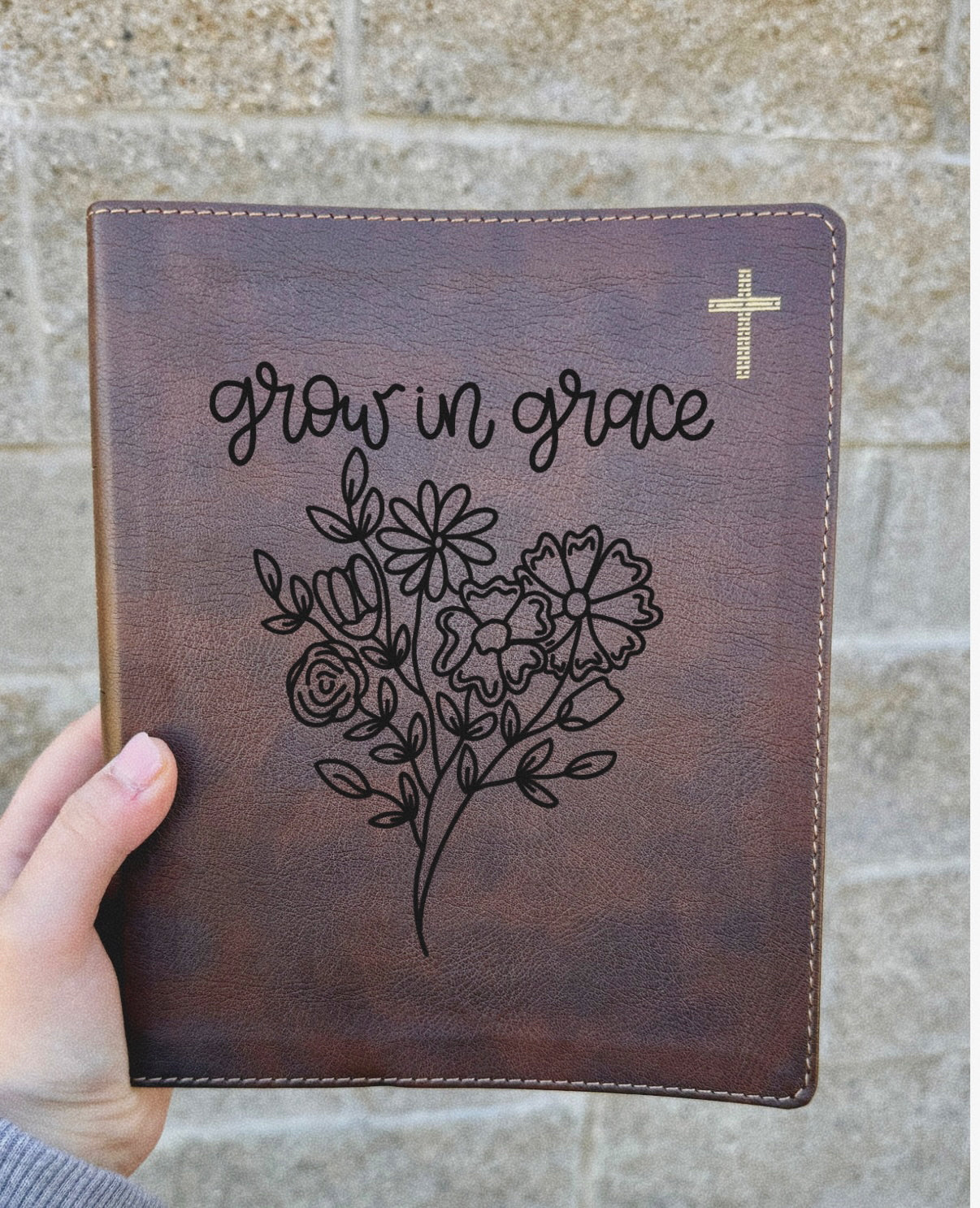 The Grow Bible | Personalized Leather Bible with Laser Engraving | Keepsake Gift | Christian Wedding, Baptism