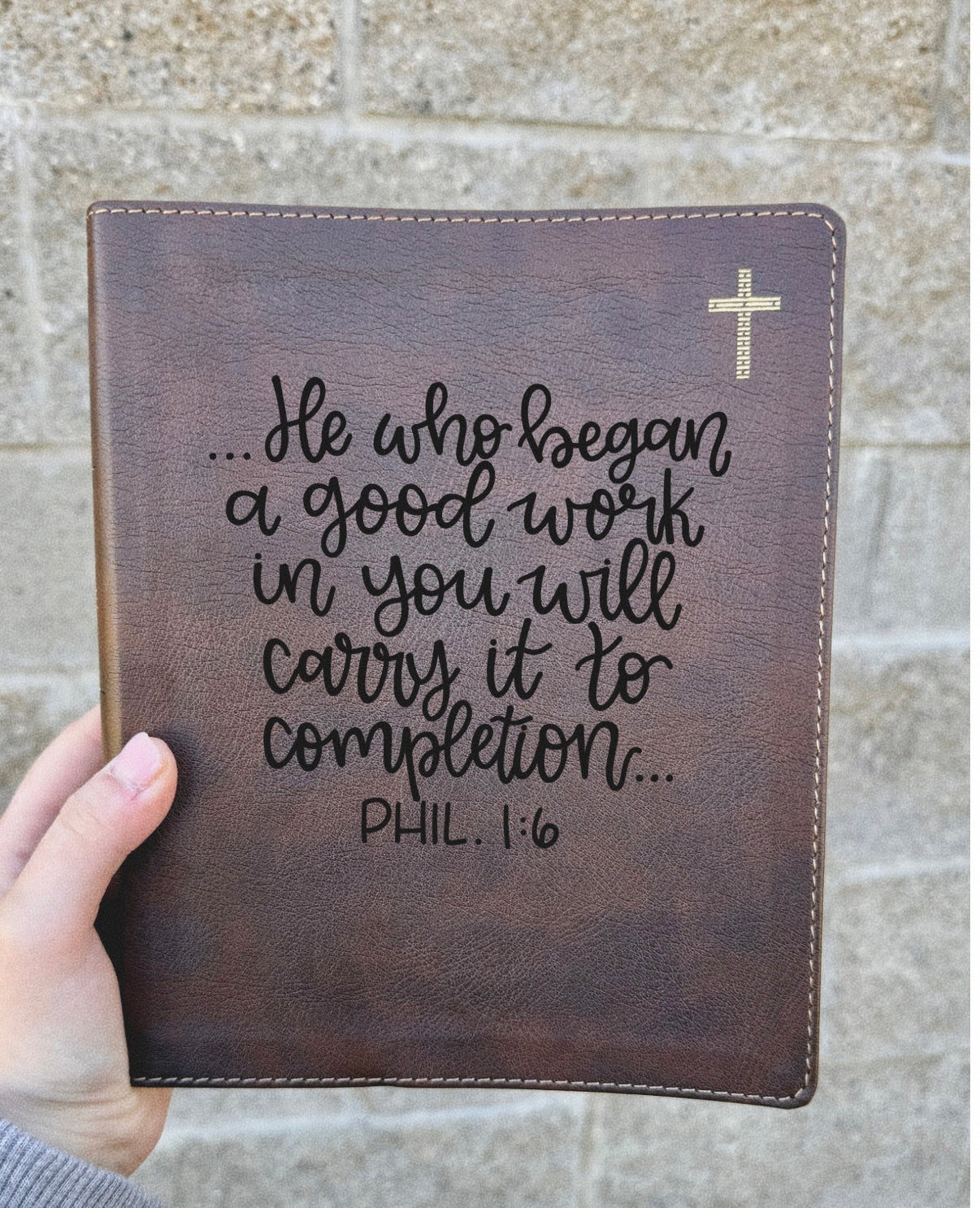 The Phil 1:6 Bible | Personalized Leather Bible with Laser Engraving | Keepsake Gift | Christian Wedding, Baptism