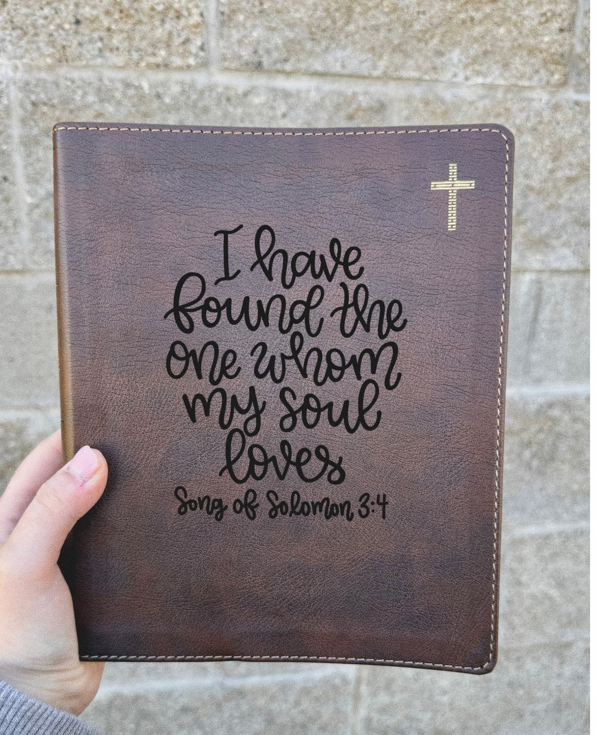 The Soul Loves Bible | Personalized Leather Bible with Laser Engraving | Keepsake Gift | Christian Wedding, Baptism