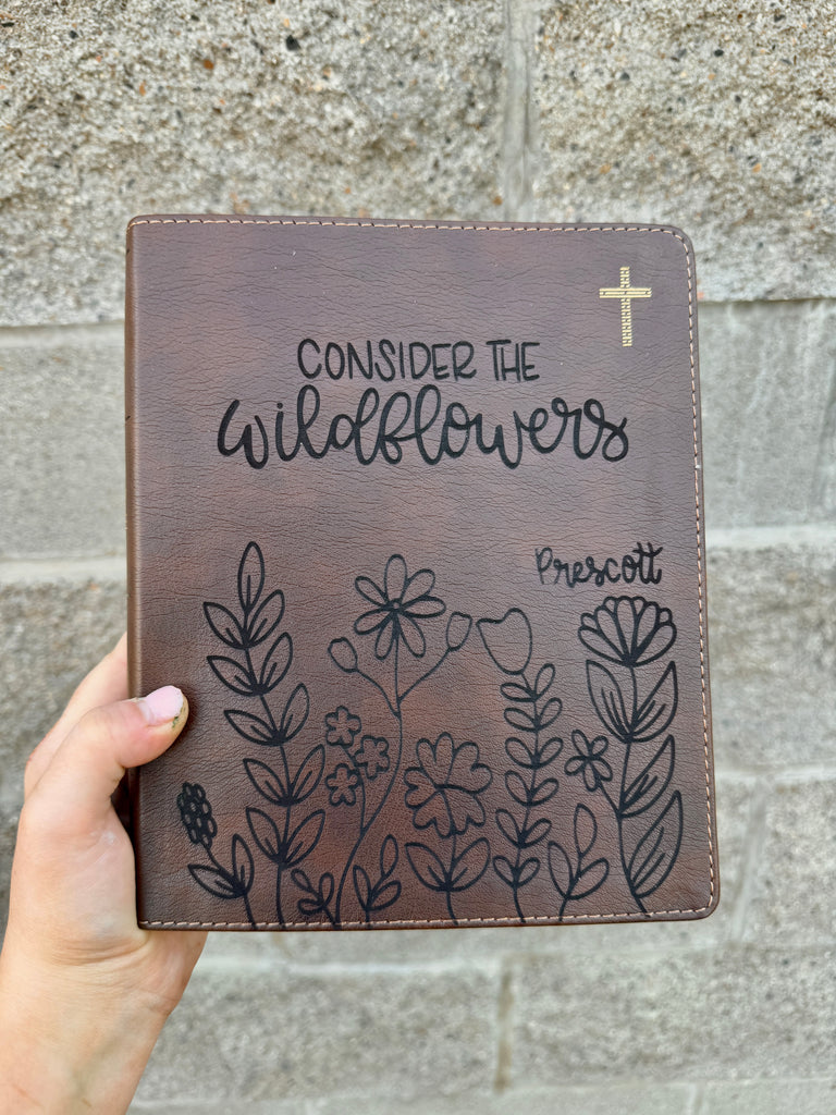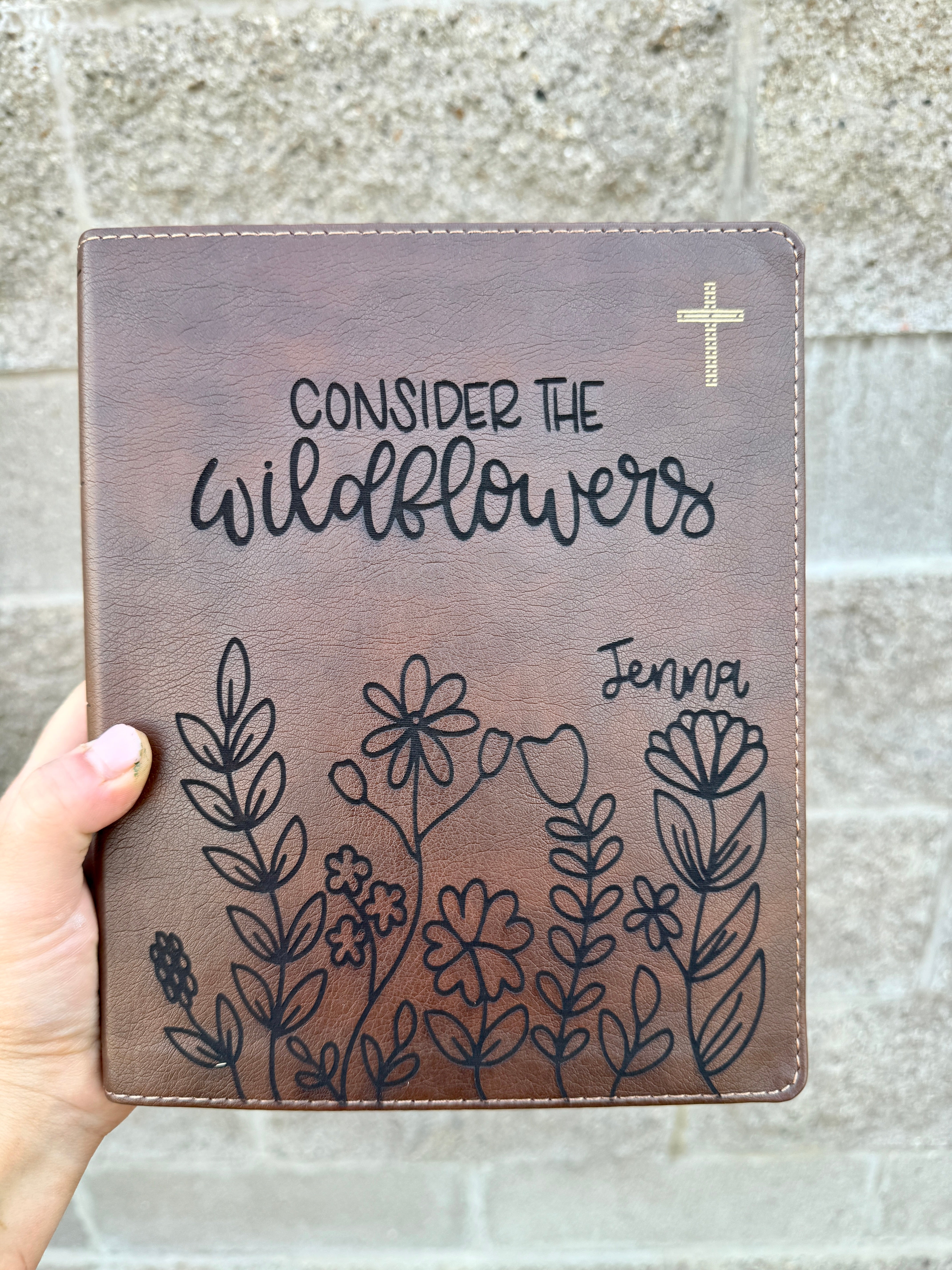 The Wildflower Bible II | Personalized Leather Bible with Laser Engraving | Keepsake Gift | Christian Wedding, Baptism